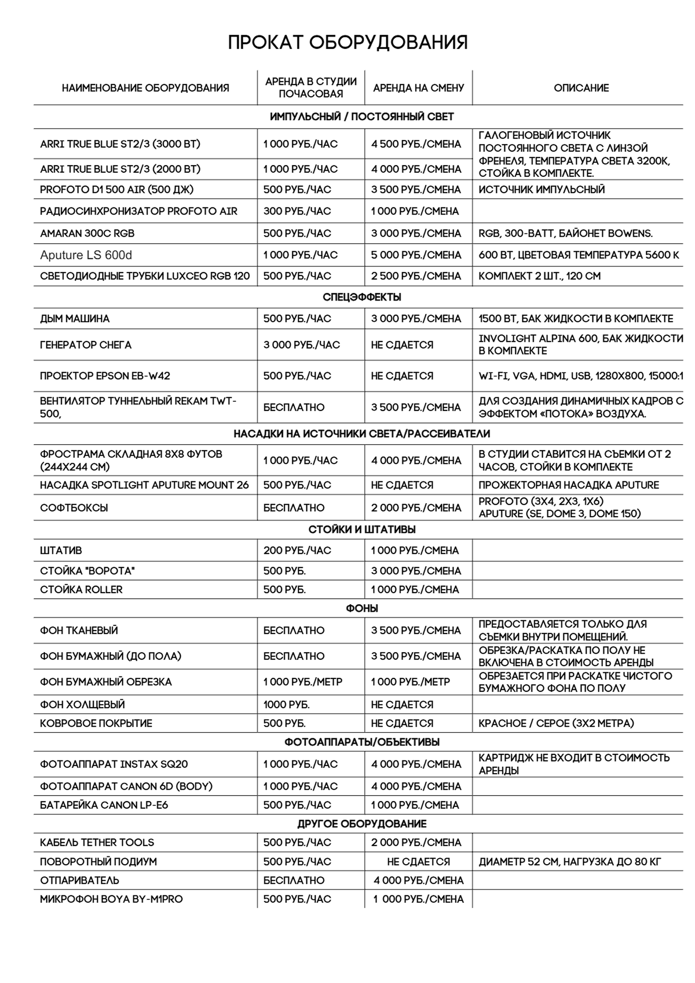 ПРОКАТ ОБОРУДОВАНИЯ